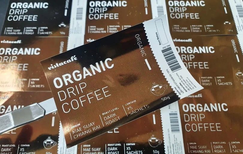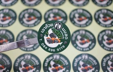 5. สติ๊กเกอร์ เนื้อพลาสติกโปร่งใส สติ๊กเกอร์ฉลากเนื้อเหนียว ฉีกขาดยาก สามารถกันน้ำได้ 100% ไม่บดบังความงามของพื้นผิวบรรจุภัณฑ์ เมื่อติดลงไปจะให้ความรู้สึกเสมือนเป็นหนึ่งเดียวกับพื้นผิวบรรจุภัณฑ์ เหมาะสำหรับติดขวดโหล ขวดแก้ว หรือติดตรงที่ตัวสินค้า ต้องระวังเรื่องโทนสี เพราะพื้นผิวไม่มีรองพื้นสีขาว โทนสีจะเปลี่ยนไปตาม สีของผิววัสดุที่ติด