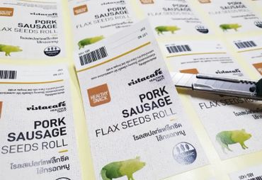 2. สติ๊กเกอร์ เนื้อกระดาษขาวเงา ลักษณะเป็นเนื้อกระดาษ มีความมันเงา ทนความชื้น สามารถนำเข้าตู้เย็นได้ แต่ไม่กันน้ำและฉีกขาดได้ เหมาะสำหรับติดลงบนบรรจุภัณฑ์ที่ไม่ต้องแช่น้ำหรือเปียกน้ำและสินค้าที่ไม่ต้องเก็บรักษาเป็นเวลานาน
